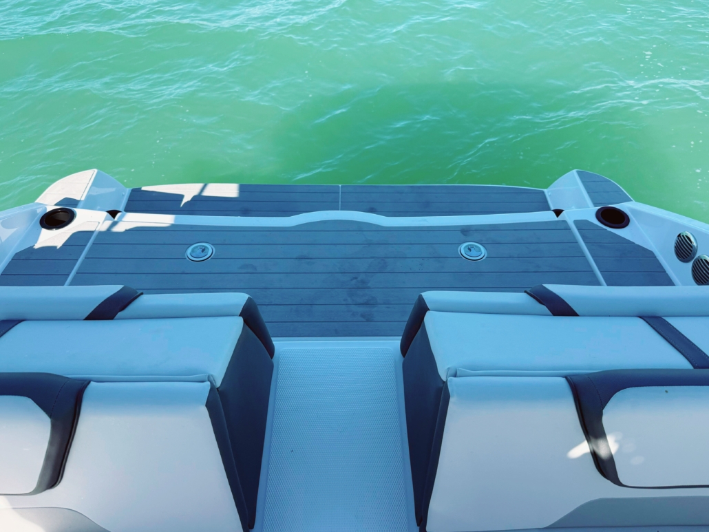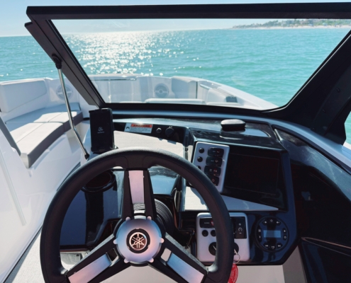 relaxed hop on/off due to the very flat bathing platform, no wake mode, cruise control assistent, anchoring close to the beach – no prop