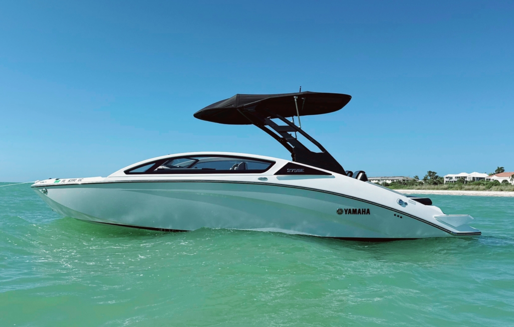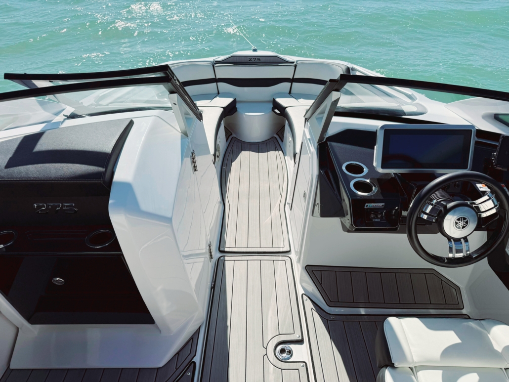 Rent the Yamaha 275 SE Bowrider Jet Boat for a powerful, modern, and family-friendly boating experience. This 27.5 ft. bowrider jet boat rental combines sleek design with advanced jet propulsion technology, delivering smooth acceleration, responsive handling, and enhanced safety with no exposed propeller.