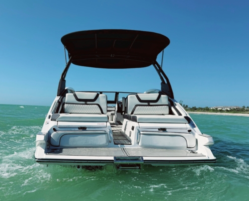 Built with a shallow draft, the boat allows confident navigation in near-shore and coastal areas, while the extra-wide, flat bathing platform provides relaxed and effortless entry and exit directly from the beach—ideal for swimming, lounging, or shoreline stops. The thoughtfully designed layout emphasizes upscale finishes, spacious seating, and a premium onboard experience.